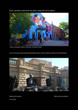 La desposesión también adopta la forma de la gentrificación. De Londres a Buenos Aires, la gentrificación desarrolla características distintivas en cada lugar, pero la esencia es la misma en casi todos lados: jóvenes creatives tomando buen café, en búsqueda de la autenticidad en cuya destrucción son cómplices. Algunes tienen la suerte de ser ignorantes de ello. Otres, tratan de resistir el presagio de su propio rol en el proceso: cuando el arte se vuelve parte de la resistencia comunitaria, comienzan a aparecer aperturas en tanto el plano material como el simbólico, a través de las cuales se puede impulsar la lucha en contra de las expulsiones.